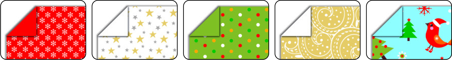 Origami papír na téma Vánoce. Papíry jsou z jedné strany s motivem a z druhé strany je barva, která ladí s motivem.